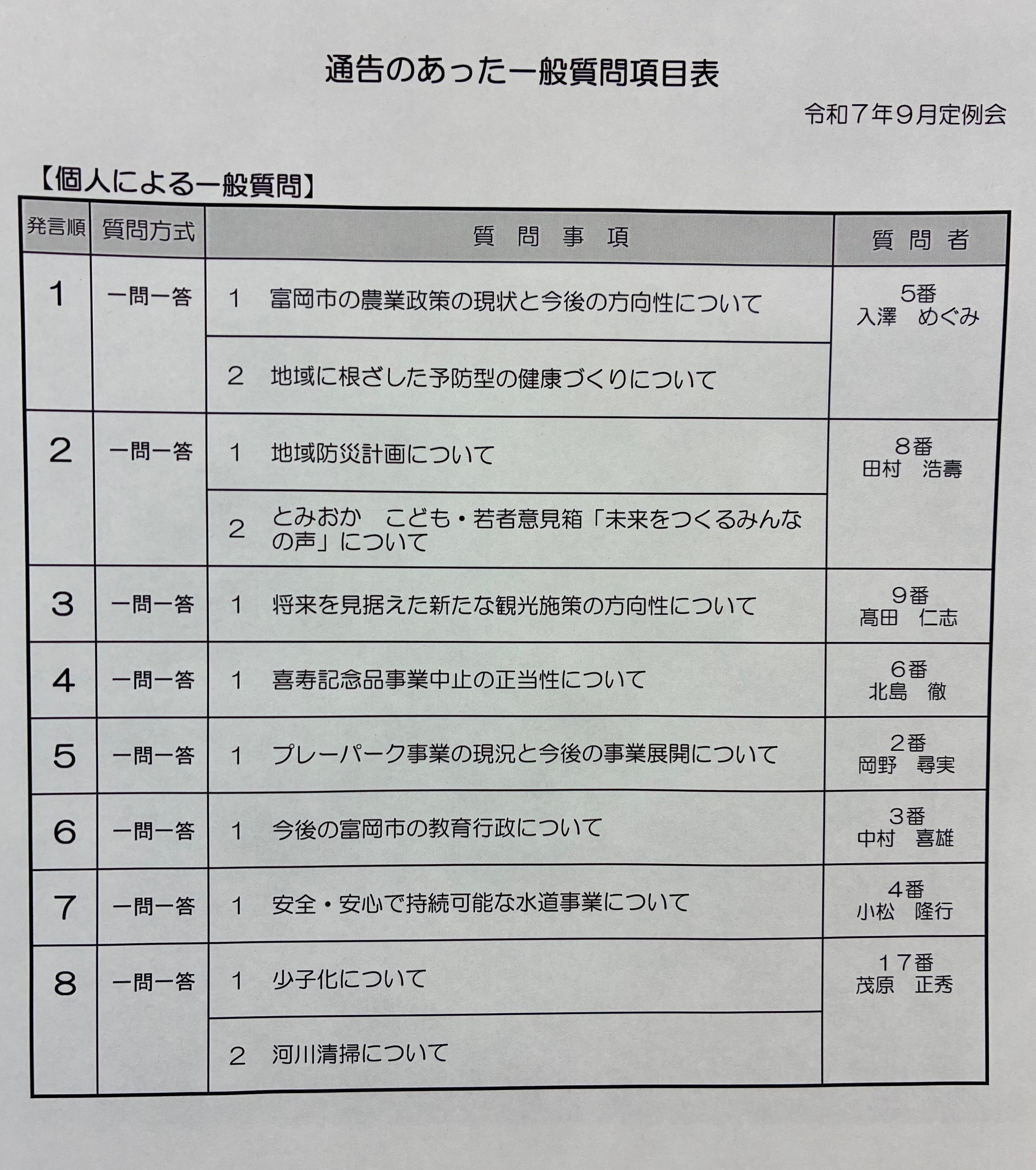 £¸·î£±£¸Æü¡Ê·î¡Ë ¡µÄ²ñ»ö̳¶É¤Ø¹Ô¤¡¢£¹·îÄêÎã²ñ¤Î°ìÈ̼ÁÌä¤Î½çÈÖ¤ò·è¤á¤ë¤¯¤¸°ú¤¤Î·ë²Ì¤ò³Îǧ¤·¤Æ¤¤Þ¤·¤¿¡£ º£²ó¼ÁÌ䤹¤ëµÄ°÷¤Ï£¸¿Í¤Ç¤¹¡£ ¤½¤·¤Æ»ä¤Ï¡¢£¸È֤Ǥ·¤¿¤Î¤Ç¡¢£¶·îÄêÎã²ñ¤Ë³¤¡¢¤Þ¤¿ºÇ¸å¤È¤¤¤¦¤³¤È¤Ë¤Ê¤ê¤Þ¤·¤¿¡£ °ìÈ̼ÁÌä¤Ï£¹·î£³Æü¤È£´Æü¤ÎÆóÆü´Ö¤Ç¹Ô¤ï¤ì¤Þ¤¹¤¬¡¢£´Æü¤È¤¤¤¦¤³¤È¤¬·è¤Þ¤ê¤Þ¤·¤¿¡£ ¤È¤³¤í¤Ç¡¢£¸¿Í¤ÎµÄ°÷¤Î̾Á°¤ò½Ð¤¹¤³¤È¤Ï¤Ç¤¤Ê¤¤¤Î¤Ç¤¹¤¬¡¢´é¤Ö¤ì¤ò¸«¤Æ¡¢¡Ø¤³¤ì¤Ç¤¤¤¤¤Î¤«¡©¡Ù¤Èµ¿Ìä¤ò»ý¤Á¤Þ¤·¤¿¡£ ¤È¤¤¤¦¤Î¤Ï¡¢¤½¤Î£¸¿Í¤Î¤¦¤Á£µ¿Í¤Ï£±´ü¡¢£²¿Í¤Ï£²´ü¡¢¤½¤·¤Æ£³´ü°Ê¾å¤Ï»ä°ì¿Í¤À¤±¤À¤Ã¤¿¤«¤é¤Ç¤¹¡£ ¤Á¤Ê¤ß¤Ë¸½ºß¤ÎÉÙ²¬»ÔµÄ²ñµÄ°÷¤Ï£±£¸¿Í¤Ç¡¢£±´ü¤Ï£¶¿Í¡¢£²´ü¤Ï£³¿Í¤Ç¡¢£³´ü°Ê¾å¤Ï£¹¿Í¤Ç¤¹¡£ £±´üÌܤεİ÷¤µ¤ó¤ÏµÄ°÷¤Ë¤Ê¤Ã¤Æ¤«¤é¸½ºß£³Ç¯ÌܤǤ¹¡£ £²´üÌܤεİ÷¤µ¤ó¤Ï£·Ç¯ÌܤǤ¹¡£ ¤Ä¤Þ¤ê¡¢£³´üÌܰʾå¤ÎµÄ°÷¤Ï£±£±Ç¯°Ê¾å¤Î·Ð¸³¤¬¤¢¤ë¤È¤¤¤¦¤³¤È¤Ë¤Ê¤ê¤Þ¤¹¡£ £±£±Ç¯°Ê¾å¤Î·Ð¸³¤¬¤¢¤Ã¤Æ¡¢¤³¤ì¤Þ¤Ç¤Î»ÔÀ¯¤ä¸½ºß¤ÎÌäÂêÅÀ¤Ê¤É¤¬¤ï¤«¤Ã¤Æ¤¤¤ë¤Ï¤º¤ÎµÄ°÷¤¬°ìÈ̼ÁÌä¤Ë¤ÏÈó¾ï¤Ë¾Ã¶ËŪ¤Ç¡¢£¹¿ÍÃæ»ä¤À¤±¤È¤¤¤¦¤Î¤Ï¡¢¹¥¤Þ¤·¤¤¤³¤È¤È¤Ï»×¤¨¤Þ¤»¤ó¡£ »ÔÀ¯¤ò´Æ»ë¤¹¤ë¤Î¤¬µÄ°÷¤Î»Å»ö¤Ç¤¹¤¬¡¢»ÔÀ¯¤Ë¤Ä¤¤¤ÆËÉÙ¤ÊÃ챤ä·Ð¸³¤ò»ý¤Ã¤Æ¤¤¤ëµÄ°÷¤ÎÂç¿¿ô¤¬¡¢ËܲñµÄ¤Ç°ìÈ̼ÁÌä¤ò¤·¤Ê¤¤¤È¤¤¤¦¤Î¤Ç¤Ï¡¢µÄ²ñ¤¬¶Ë¤á¤ÆÄäÂÚ¤·¤Æ¤¤¤ë¤È¤¤¤¦¤³¤È¤Ë¤Ê¤Ã¤Æ¤·¤Þ¤¦¤è¤¦¤Ë»×¤¨¤Þ¤¹¡£ »ÔŤλÔÀ¯¤Î¿Ê¤áÊý¤Ë¤Ï¡¢»ä¤Ï¶¯¤¤µ¿Ìä¤ò»ý¤Ã¤Æ¤¤¤Þ¤¹¤¬¡¢¤½¤ì¤ò¥Á¥§¥Ã¥¯¤·¡¢°Õ¸«¤äÄ󰯤ò½Ò¤Ù¤Ê¤±¤ì¤Ð¤Ê¤é¤Ê¤¤µÄ²ñ¤â¤³¤Î¾õ¶·¤Ç¤Ï¡¢ÉÙ²¬»Ô¤Î̤Íè¤ÏÈó¾ï¤Ë·üǰ¤»¤¶¤ë¤òÆÀ¤Þ¤»¤ó¡£ ¼ã¼Ô¤¬»Ô³°¤Ë½Ð¤Æ¹Ô¤Ã¤Æ¤·¤Þ¤¤¡¢¾¯»Ò²½¤¬²Ã®¤¹¤ë¸¶°ø¤Ï¡¢¤³¤Î¤¢¤¿¤ê¤Ë¤¢¤ë¤Î¤«¤â¤·¤ì¤Þ¤»¤ó¡£ |