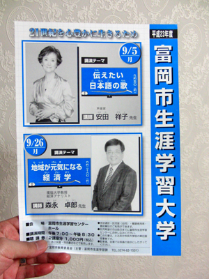 | £¶·î£±£¸Æü¡ÊÅڡˤ½¤Î£³ ¡úÉÙ²¬»ÔÀ¸³¶³Ø½¬Âç³Ø¤Î¥Á¥é¥·¤Ç¤¹¡£ À¸³¶³Ø½¬Âç³Ø¤ÏÎãǯ¡¢£··î¤«¤é£¸·î¤Ë¡¢£³²ó¤Î¹Ö±é¤¬¹Ô¤ï¤ì¤Æ¤¤¤Þ¤·¤¿¤¬¡¢º£Ç¯¤ÏÀáÅŤΤ¿¤á¡¢½ë¤µ¤¬¤Ò¤ÈÃÊÍ¤¿£¹·î¤Ë£²²ó¤Ç¼Â»Ü¤¹¤ë¤è¤¦¤Ç¤¹¡£ ![]() °ÂÅľͻҤµ¤ó¡¢¿¹±ÊÂîϺ¤µ¤ó¤Î¤ªÆó¿Í¤Ç¤¹¡£ |