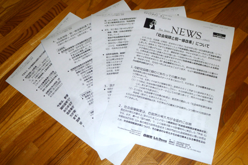 | 6月27日(水)その1 ★夜、ちょっと冷やっこい日があることから、今日はなんだか鼻の調子がいまひとつです。 風邪とまでのレベルではないのですが、なにかプチ花粉症くらいの感じです。 鼻が調子悪いと、集中力が散漫になりますので、嫌ですよね。 ★私は自民党の党員ではないのですが、ときどき自民党からチラシのような文書がFAXで送られてきます。 今回は当然のことながら、昨日衆院で可決された『消費税率引き上げを柱とする社会保障・税一体改革法案』について触れています。 解散総選挙モードに突入したのかもしれませんが、民主党は次の選挙では壊滅的な結果になる可能性もあるのでは? でも、『ならば自民党に』というように、有権者の気持ちがどっと動くかというのも難しいように感じます。 勝者なき戦いということに、ひょっとしたらなってしまうのでしょうか? ![]() 4枚あると、読むのにも気合が必要です… ★「ザ・ピーナッツ」で活躍した伊藤エミさんが亡くなられたそうです。 確かジュリーこと『沢田研二さん』と結婚されたこともある方では? そういえば、ジュリーは京都の出身ですが、銀閣寺の近くにご実家があって、表札に『研二』さんのお名前があり、『おおおおぉっ!』と思ったことがありました。 ピーナッツといえば、双子のスーパーアイドルでしたが、まさに国民的な人気で、大人なら知らない者はいないくらいの存在であったかと思います。 また、怪獣映画『モスラ』にも出演し、モスラの歌を歌われていましたので、子どもたちにもかなり有名であったのでは… ニュースサイトに出ていたお写真を先ほど見ましたが、今の芸能界でも十分に通用するようなビジュアルですよね。 エミさんのご冥福をお祈りいたします。 |