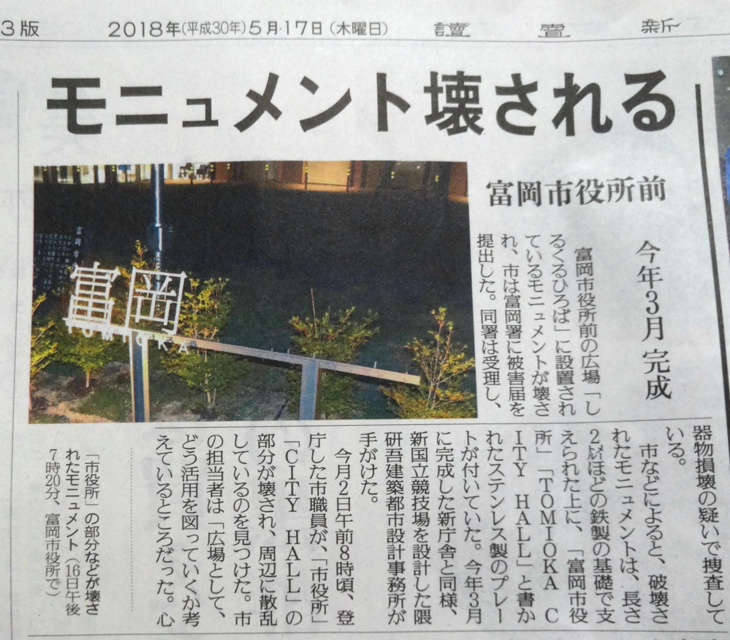 £µ·î£±£¸Æü¡Ê¶â¡Ë £»ÔÌò½ê£³³¬¤Ë¡¢¤À¤ì¤Ç¤â¼«Í³¤Ë½ÐÆþ¤ê¤Ç¤¤ë¥³¡¼¥Ê¡¼¤¬¤¢¤ê¤Þ¤¹¡£ ¤ª¤·¤ã¤ì¤ÊÊ·°Ïµ¤¤Ç¡¢¤ªÅ·µ¤¤ÎÎɤ¤Æü¤Ë¤Ï¡¢³°¤ÎÉ÷¤ò´¶¤¸¤Ê¤¬¤é¡¢¤¯¤Ä¤í¤²¤ë¤è¤¦¤Ê¥¹¥Ú¡¼¥¹¤Ç¤¹¡£ ![]() ¤·¤«¤·¡¢¤³¤Î¥³¡¼¥Ê¡¼¤Ë¿Í¤¬¤¤¤ë¤È¤³¤í¤ò¡¢¤¢¤Þ¤ê¸«¤¿¤³¤È¤¬¤¢¤ê¤Þ¤»¤ó¡£ ¾¡¼ê¤ËÆþ¤Ã¤Æ¤Ï¤¤¤±¤Ê¤¤¾ì½ê¤È»×¤Ã¤Æ¤¤¤ëÊý¤¬Â¿¤¤¤Î¤«¡¢¤½¤ì¤È¤â¡¢¤³¤³¤Î¸ºß¤òÃΤé¤Ê¤¤¤Î¤«¤Ï¡¢Ê¬¤«¤ê¤Þ¤»¤ó¡£ ¤Ç¤â¡¢¤»¤Ã¤«¤¯¤³¤Î¤è¤¦¤ÊÁÇŨ¤Ê¾ì½ê¤¬¤¢¤ë¤Î¤Ç¤¹¤«¤é¡¢Â¿¤¯¤ÎÊý¤ËÍøÍѤ·¤Æ¤¤¤¿¤À¤¤¿¤¤¤â¤Î¤Ç¤¹¡£ ¢ºâÀ¯²ÝŤµ¤ó¤¬¡¢»ÔÌò½êÁ°¤Î¥â¥Ë¥å¥á¥ó¥ÈÇ˲õ»ö·ï¤Î·ï¤Ç¡¢ºòÆü¤ÎNHK¤Î¥Ë¥å¡¼¥¹ÈÖÁȤ˽ФƤ¤¤é¤Ã¤·¤ã¤¤¤Þ¤·¤¿¤Î¤Ç¡¢¤Á¤ç¤Ã¤È¤½¤Î´Ø·¸¤Î¤ªÏäò»Ç¤Ã¤Æ¤¤Þ¤·¤¿¡£ ºòÆü¤Ï°ìÆüÃæ¡¢¤½¤Î»ö·ï¤Î¤³¤È¤Ç¥Þ¥¹¥³¥ß¤Î¼èºà¤¬»¦Åþ¤·¡¢¤½¤ÎÂбþ¤ÇÂçË»¤·¤À¤Ã¤¿¤½¤¦¤Ç¤¹¡£ ¤È¤¤¤¦¤³¤È¤Ï¡¢¤É¤¦¤â»ä¤¬¥Û¡¼¥à¥Ú¡¼¥¸¤Ç¤½¤Î·ï¤ò¼è¤ê¾å¤²¤¿¤³¤È¤¬¡¢¥Þ¥¹¥³¥ß¤ÎÊóÆ»¤Ë¤Ä¤Ê¤¬¤Ã¤¿¤³¤È¤Ï³Î¼Â¤Ê¤è¤¦¤Ç¤¹¡£ ¤È¤³¤í¤Ç¡¢º£Æü¡¢ºÆÅÙ¤½¤Î¸½¾ì¤ò¤è¤¯¸«¤Æ¤ß¤Þ¤·¤¿¡£ ![]() ¤³¤Î¥â¥Ë¥å¥á¥ó¥È¤Ï¾å¤¬¡ØÉÙ²¬»ÔÌò½ê¡Ù¤Ç¡¢²¼¤Ë¡ØTOMIOKA CITY HALL¡Ù¤Èɽµ¤µ¤ì¤Æ¤¤¤Þ¤·¤¿¤¬¡¢²õ¤µ¤ì¤¿´Á»ú¤ÎÉôʬ¤Ï¡Ø»ÔÌò½ê¡Ù¤Ç¡¢±Ñ¸ì¤ÎÉôʬ¤Ï¡ØCITY HALL¡Ù¤Ç¤¹¡£ ¤Ä¤Þ¤ê¡¢Èȿͤϡ¢¡Ø»ÔÌò½ê¡áCITY HALL¡Ù¤À¤±Ç˲õ¤·¤¿¤È¤¤¤¦¤³¤È¤Ç¤¹¡£ ¤³¤ì¤Ï¤â¤·¤«¤¹¤ë¤È¡¢¥á¥Ã¥»¡¼¥¸À¤¬¤¢¤ëÈȺá¤Ê¤Î¤«¤â¡© ¤³¤Î¿·Ä£¼Ë¤ËÂФ·¤ÆÉÔËþ¤äÅܤê¤Î¤è¤¦¤Ê¥Í¥¬¥Æ¥£¥Ö¤Ê´¶¾ð¤ò»ý¤Ã¤¿¿Íʪ¤¬¡¢¹Ô¤Ã¤¿ÈÈ¹Ô¤Ê¤Î¤Ç¤Ï¡Ä ¤Á¤ç¤Ã¤È¤½¤ó¤Ê¿äÍý¤ò¤·¤Æ¤·¤Þ¤¤¤Þ¤·¤¿¡£ ¡ÃëÁ°¤Ë¡¢±§ÅĤΰ¤Á¾²¬¸ø±à¤Ë¹Ô¤Ã¤Æ¤ß¤Þ¤·¤¿¡£ ºòÆü¡¢¡Ø¤³¤Î¸ø±à¤Ë¤¢¤ëËüÍÕ²ÎÈ꤬¡¢¾¾¤ÎÌڤλޤǸ«¤¨¤Ê¤¤¾õ¶·¤Ë¤Ê¤Ã¤Æ¤¤¤ë¡Ù¤È¤Î¾ðÊó¤ò¤¤¤¿¤À¤¤¤¿¤«¤é¤Ç¤¹¡£ ![]() Áᮡ¢¸ø±àÆâ¤Î¸½¾õ¤ò³Îǧ¤·¤Æ¤ß¤Þ¤¹¤È¡¢³Î¤«¤Ë¾¾¤Î»Þ¤¬Â礤¯¤Î¤Ó¤Æ¤·¤Þ¤Ã¤Æ¤¤¤Þ¤·¤¿¡£ ![]() ¤³¤ì¤Ç¤Ï¡¢²ÎÈê¤Î¼Ì¿¿¤ò»£¤ë¤Î¤âÆñ¤·¤¤¤è¤¦¤Ê¾õ¶·¤È»×¤¨¤Þ¤·¤¿¤Î¤Ç¡¢¤½¤Î¤ǻÔÌò½ê¤Ë¹Ô¤¡¢¸ø±à¤ÎôÅöÉô½ð¤Î²ÝŤµ¤ó¤Ë¾õ¶·¤òÅÁ¤¨¡¢°ìÅÙ¤Þ¤º¤Ï¸½ÃϤò¸«¤Æ¤¤¤¿¤À¤¤¤¿¾å¤Ç¡¢»Þ¤ÎȲºÎ¤ò¤ª´ê¤¤¤·¤Æ¤Þ¤¤¤ê¤Þ¤·¤¿¡£ ¤³¤Î¾õ¶·¤ò¸«¤ì¤Ð¡¢¤¹¤°¤ËÂбþ¤·¤Æ¤¤¤¿¤À¤±¤ë¤Î¤Ç¤Ï¤Ê¤¤¤«¤È»×¤ï¤ì¤Þ¤¹¤¬¡¢Ã´ÅöÉô½ð¤Î¤ß¤Ê¤µ¤ó¡¢¤è¤í¤·¤¯¤ª´ê¤¤¤¤¤¿¤·¤Þ¤¹¡£ |
