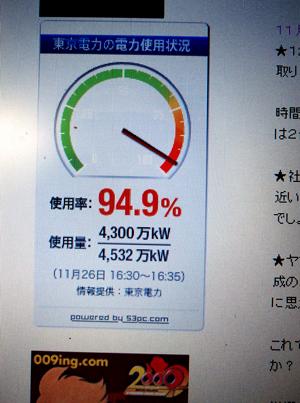 | £±£±·î£²£¶Æü¡Ê·î¡Ë¤½¤Î£³ ¡ú»ä¤Î¥µ¥¤¥È¤Ë¤Ï¡¢ÅìÅŤÎÅÅÎÏ»ÈÍѾõ¶·¤Î¥á¡¼¥¿¡¼¤¬ÀßÃÖ¤µ¤ì¤Æ¤¤¤Þ¤¹¤¬¡¢º£Æü¤ÎͼÊý¡¢¸½ºß¤ÎÅÅÎÏ»ÈÍÑΨ¤ò¸«¤Æ¡¢¡Ø¤à¤à¤à¤à¤à¡ª¡Ù¤È¤¤¤¦»×¤¤¤¬¤·¤Þ¤·¤¿¡£ ¤Ê¤ó¤È£¹£´¡¥£¹¡ó¡£ ![]() ´¨¤¯¤Ê¤Ã¤Æ¤¤¿¤È¤Ï¸À¤¨¡¢¤Þ¤À¤Á¤ç¤Ã¤ÈÅߤäݤ¤ÄøÅ٤ˤ⤫¤«¤ï¤é¤º¡¢¤³¤Î¿ôÃÍ¡£ ¿¿²Æ¤À¤Ã¤Æ¡¢¤³¤³¤Þ¤Ç¹â¤¤¿ôÃͤϸ«¤¿¤³¤È¤¬¤¢¤ê¤Þ¤»¤ó¤Ç¤·¤¿¡£ ¤³¤ÎÅߤÎÅÅÎ϶¡µë¤ÏÂç¾æÉפʤó¤Ç¤·¤ç¤¦¤«¡© É԰¤ˤʤäƤ¤Þ¤·¤¿¡£ ¡úºÇ¶á¡¢¥¨¥³¥Ð¥Ã¥°¤ò¤¢¤Á¤³¤Á¤Ç¤¤¤¿¤À¤¯µ¡²ñ¤¬¤¢¤ê¤Þ¤¹¤¬¡¢°ú¤½Ð¤·¤ò³«¤±¤Æ¤ß¤¿¤é¡¢»È¤Ã¤Æ¤¤¤Ê¤¤¥¨¥³¥Ð¥Ã¥¯¤¬²¿Ëç¤â½Ð¤Æ¤¤Þ¤·¤¿¡£ Á´Á³¥¨¥³¤Ë¤Ê¤Ã¤Æ¤¤¤Ê¤¤¤Ç¤¹¤Í¡Ä |